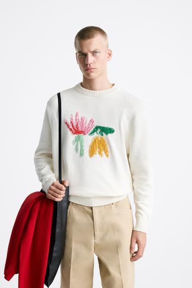 Kombinierter Pullover Mit Stickerei Gebrochenes Weiss Zara Deutschland Germany